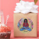 Une fille de yoga aux cheveux noirs est assise avec une fleur dans les mains. Cet autocollant vous rappellera de pratiquer la gratitude. Et rappelez-vous que votre vie est en harmonie avec l'univers. Namaste.