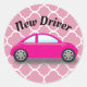 Rond Nouveau conducteur Voiture rose sur Sticker Quatre