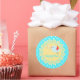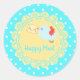 Cet autocollant vibrant est un joyeux mélange d'un oiseau tenant une enveloppe dans son bec, pois bleu et blanc et motif en dentelle jaune. Le texte "Happy Mail" peut être supprimé ou remplacé par le texte de votre choix.