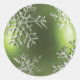 Autocollant rond avec l'image d'un beau ornement de Noël vert décoré avec des flocons de neige blancs brillants. Voir les confettis correspondants et le papier d'emballage. Voir la collection entière de Sticker de Noël sous la catégorie CARDS & STICKERS dans la section VACANCES.