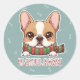 This adorable sticker shows a French bulldog peeking from the edge with big round eyes and a tiny tongue out, wrapped in a cozy winter scarf. A playful and irresistible design that adds fun personality to notebooks, tablets, and gifts.