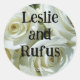 Personalized stickers add style through your wedding. A bouquet of white roses personalized a you wish.