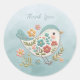 Rond Petit Oiseau Bleu Fleurs Roses Sticker