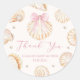 Rond Pink Bow Seashell Coastal Baby Shower Sticker