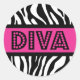 Rond Pink & Zebra Print DIVA Typography Party Sticker