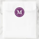 Élever vos effets avec notre autocollant rond "Plum Perfection". Avec un monogramme d'une lettre dans un cadre carré rond, c'est une touche chic et personnalisée pour l'étiquetage des articles dans le style. Ajoutez une touche d'élégance et d'individualité à vos effets personnels.
