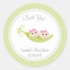 Autocollant rond pour baby shower faveur avec pois dans un design pod.
