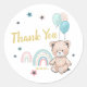 Sticker d'Anniversaire "Merci" est décoré avec un ours en peluche mignon, des ballons et un arc-en-ciel.