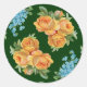 Rond Roses Jaunes Fleurs Bleues sur Sticker Vert