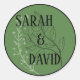 Elegant monogram wedding sticker with sage green arch and botanical art. Perfect for envelope seals.