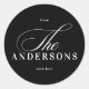 Noir et blanc. Il s'agit d'un Sticker rond minimaliste simple avec votre nom de famille pour le don de Noël et la décoration. 'The' est grand en calligraphie à placer avec votre nom modifiable dans n'importe quelle police disponible. holidayz18