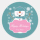 Rond Snowman rose et Turquoise Sticker de Noël