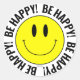 "Sois Heureux !" Sticker rond Smilie jaune brillant. Conçu par SMILIEWEAR™. Répandez un peu de bonheur ! Des autocollants de grande et petite taille sont disponibles. CONCEVOIR DES OPTIONS D'ARRIÈRE - PLAN DE COULEUR CLAIRE OPTIMISÉES. Un autocollant drôle et heureux pour emballage cadeau, un accessoire personnel, ou un autocollant de nom d'anniversaire ou de fête de Noël. Quoi de mieux qu'un autocollant avec un sourire ?