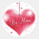 Soyez le mien - Valentine's Day autocollant avec le coeur de gloire rouge sur l'arrière - plan blanc. Ce design est entièrement personnalisable. Vous pouvez modifier la couleur de l'arrière - plan, redimensionner ou supprimer les objets.