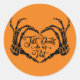 Élégant autocollant d'Halloween avec des mains squelettes formant une forme cardiaque.