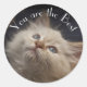 Un chaton blanc aux yeux bleus, moelleux et adorable regarde vers le haut l'affirmation "Vous êtes le meilleur". Ajoutez une pensée positive à la journée de quelqu'un avec l'autocollant le plus mignon autour.
