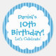 Sticker 10th Birthday Blue Stripes V1C Ce joli autocollant rayé ajoute une belle touche à vos invitations d'anniversaire et à vos faveurs de fête d'anniversaire. Si mignon ! Personnalisez avec le nom de la fille ou du garçon d'anniversaire !