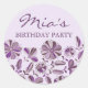 Cet autocollant d'anniversaire personnalisable moderne présente des fleurs violettes sur un arrière - plan mauve doux. Customisez-le en ajoutant vos détails dans la police de votre choix !