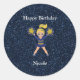 Rond Sticker à étincelles bleues "Joyeux anniversaire"