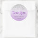 Autocollant rond pour la douche nuptiale avec parties scintillant faux argent et arrière - plan d'aquarelle mauve ombragée.