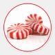 sticker rond avec une image de trois bonbons de menthe poivrée sur blanc. Bordure rouge. Voir les confettis correspondants et le papier d'emballage. Voir la collection entière de Sticker de Noël sous la catégorie CARDS & STICKERS dans la section VACANCES.