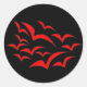 Cet ensemble d'autocollants ronds présente une collection d'images simples de chauves-souris volant ensemble dans un motif nuageux. Les chauves-souris sont rouges et l'arrière - plan est noir. Les enfants adoreront ce design mignon.