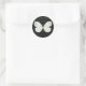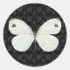 Élégant autocollant rond / enveloppe scellée fait en noir sur motif damassé floral noir. Les graphismes de réalisme numérique d'un papillon blanc décorent le milieu de l'autocollant. Customisez d'ajouter le texte que vous voulez. Belle façon de finir vos enveloppes d'invitation.