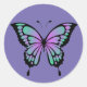 Un beau sticker papillon vert et violet sur un arrière - plan violet à utiliser sur emballage cadeau, enveloppes ou pour scrapbooking.