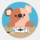 Ce mignon cochon de dessin animé a été créatif avec de l'encre et de la brosse, dessiné un autoportrait et tamponné son propre museau sur la feuille, pour compléter la ressemblance :) Entièrement personnalisable et disponible sur divers produits. Partie d'une série de petits cochons à l'étude, assis à un bureau devant une feuille de papier.