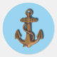 Rond Sticker Ancre en cuivre sur Bleu Bébé