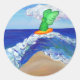 (Le tableau est d'un ange vert sur une planche de surf orange attrapant une vague. Un soleil brille dans l'arrière - plan et un palmier coule doucement sur la plage. La vague se prépare à s'écraser sur la plage en lissant la surface sablonneuse. L'ange vert rend hommage à l'Archangel Raphael dont la couleur est verte et est connu pour apporter la guérison. Le soleil aide à maintenir la vie et à travers elle les plantes comme les palmiers se renforcent et poussent. La puissance de l'énergie solaire est symbolisée dans la planche de surf orange-jaune appariée. La plage est propre et lisse. Ce tableau a été inspiré par "Effacer l'ange du cancer". Au lieu d'ajouter du texte de ce tableau, il a été laissé ouvert afin que vous puissiez vous effacer, surfer sur la vague, ou d'autres aller avec le message de flux à la plage, nuage, ou ciel.