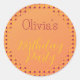 Célébrez l'anniversaire de votre fille avec cet autocollant d'anniversaire de style mignon mais élégant. L'arrière - plan principale présente un dégradé de couleurs allant du rose, du jaune, de l'orange et du bordeaux. Le bord de l'assiette présente des pois aux mêmes couleurs un peu plus audacieux.