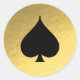 Sticker avec beau arrière - plan de feuille d'or et symbole de pique noir.
