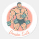 Sticker avec l'illustration vintage d'un culturiste et de votre nom. Autocollant de fitness avec texte personnalisé.