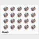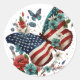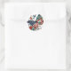 Rond Sticker avec Papillon et Fleurs Bleu et Blanc Roug