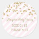 Baby shower merci vous préférez étiquette autocollant dans le rose clair pastel et rayures blanches motif avec confetti couleur or et texte manuscrit. Personnalisable avec votre propre texte. La meilleure façon de décorer vos faveurs de baby shower et de remercier vos invités d'avoir fait partie de votre journée spéciale.