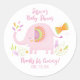 Rond Sticker Baby shower Eléphant Rose Cute