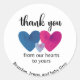 Un autocollant rond avec maman, papa, et les coeurs d'aquarelle bébé. "Du Merci de nos coeurs, au vôtre." Sceller un sac ou une boîte de faveur ou le dos d'une enveloppe de carte de remerciements.