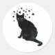 Un chat noir est entouré d'étoiles noires sur ces autocollants distinctifs.