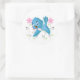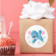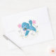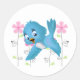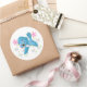 Cet autocollant rond est montré en blanc avec un joli bleu et des fleurs roses imprimé. Customisez cet objet ou achetez tel quel.