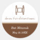Une Torah marron chocolat graphique met en évidence ce sticker Bar Mitzvah. Le nom complet du garçon Bar Mitzvah est écrit ci-dessous dans un script décontracté avec votre autre texte incluant la date de l'événement décalé par un panneau marron. Disponible dans des couleurs alternatives avec des produits correspondants et avec des options pour le Bat mitzvah.