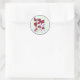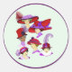 Ce charmant autocollant a des dames victoriennes en casquette rouge avec garnitures violettes de roses, plumes et arcs