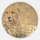 Chat guépard tacheté allongé dans l'herbe de savane.