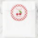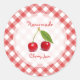 Autocollants rétro personnalisables pour confiture de cerise maison, gelée ou confit des jarres avec des cerises fraîches sur motif de nappes en vichy rouge et blanc. Ils peuvent être collés sur le couvercle ou sur le bocal lui-même et ont une collection personnalisée. D'autres autocollants de confiture de fruits sont également disponibles !