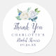 Ces fleurs blanches classiques merci les stickers de faveur de douche nuptiale sont parfaits pour une douche de mariage de printemps. L'élégant design floral présente des roses et des pivoines blanches et en ivoire doux, avec des touches de fleurs d'aquarelle bleu périvent et de feuillage vert. Personnalisez les étiquettes autocollants avec le nom des épouses, l'événement et la date. Ces autocollants peuvent être utilisés pour une douche nuptiale, un baby shower ou tout événement!