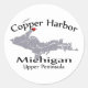 Une carte de Copper Harbour Michigan Upper Peninsula sur un autocollant.