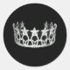 Autocollant rond montré en noir avec une photo d'une couronne de reines de concours. Customisez cet article et ajoutez du texte ou achetez tel quel. Ajoutez votre nom ou votre titre.