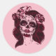 Rond Sticker crâne sucre fille rose - Jour des morts