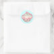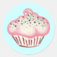 Un cupcake rose avec des arroses sur un arrière - plan vert menthe orne cet autocollant. Ces autocollants sont parfaits pour une boulangerie, boutique, scrapbook, fête d'anniversaire, enveloppe, etc... Le dessin est tiré d'une illustration originale.