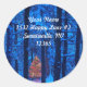 Un sapin de Noël coloré et lumineux dans la forêt foncée, aux tons bleus. Texte en blanc.